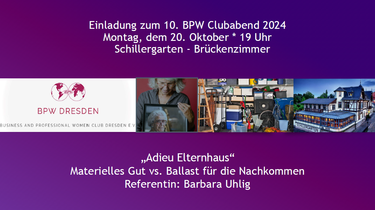 Der Verein Business Professional Women lädt jeden Monat zum Clubabend ein. Im Oktober wird das Thema „Adieu Elternhaus Materielles Gut […]
