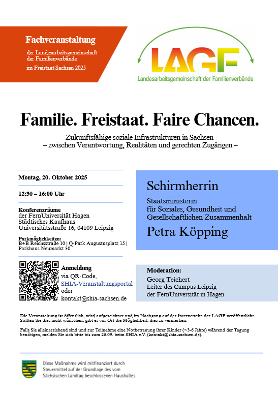 FAMILIE. FREISTAAT. FAIRE CHANCEN. Zukunftsfähige soziale Infrastrukturen in Sachsen – zwischen Verantwortung, Realitäten und gerechten Zugängen Die Fachveranstaltung unter Schirmherrschaft […]