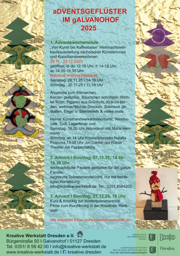 Aktuelle Ausstellungen und Veranstaltungen der Kreativen Werkstatt Dresden e.V.